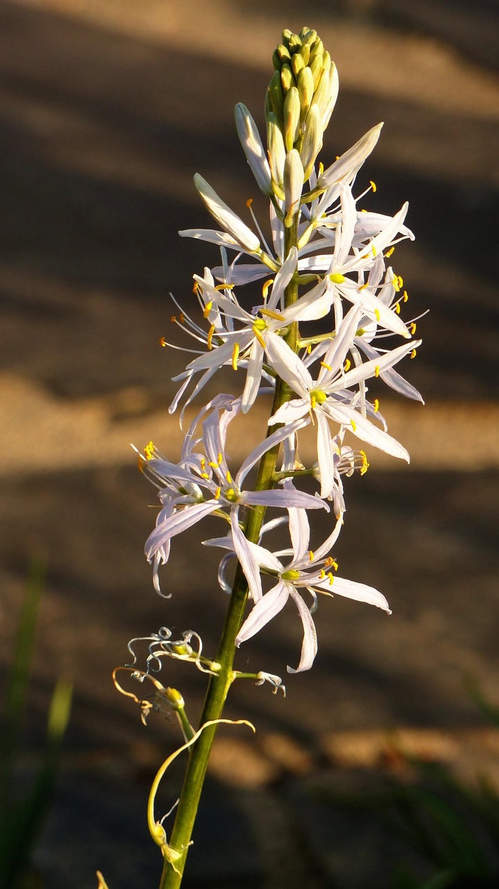 Camassia leichtlinii caerulea is a feature plant for the border in mid-May where they make magnificent shows with many erect stems of white flowers, curving skyward from thick clumps when established. They set no seed, only increasing as the bulbs split up. Longer lasting flowers result from planting in some shade and they love heavier soils that hold the moisture in the spring. A brilliant plant which relishes heavy clay soils.